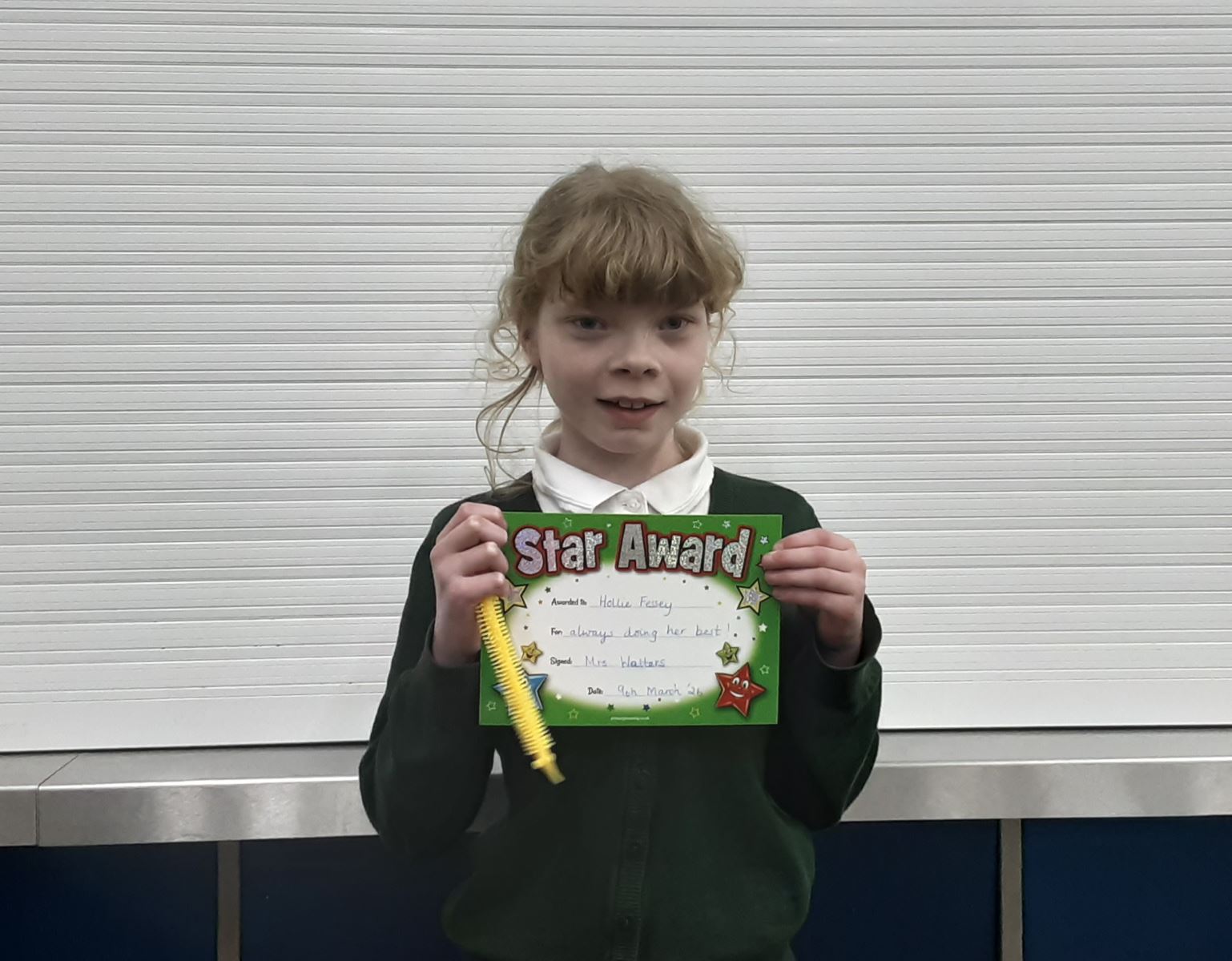 Charlotte for applying herself brilliantly when completing tasks and behaving impeccably all week, setting the standard.