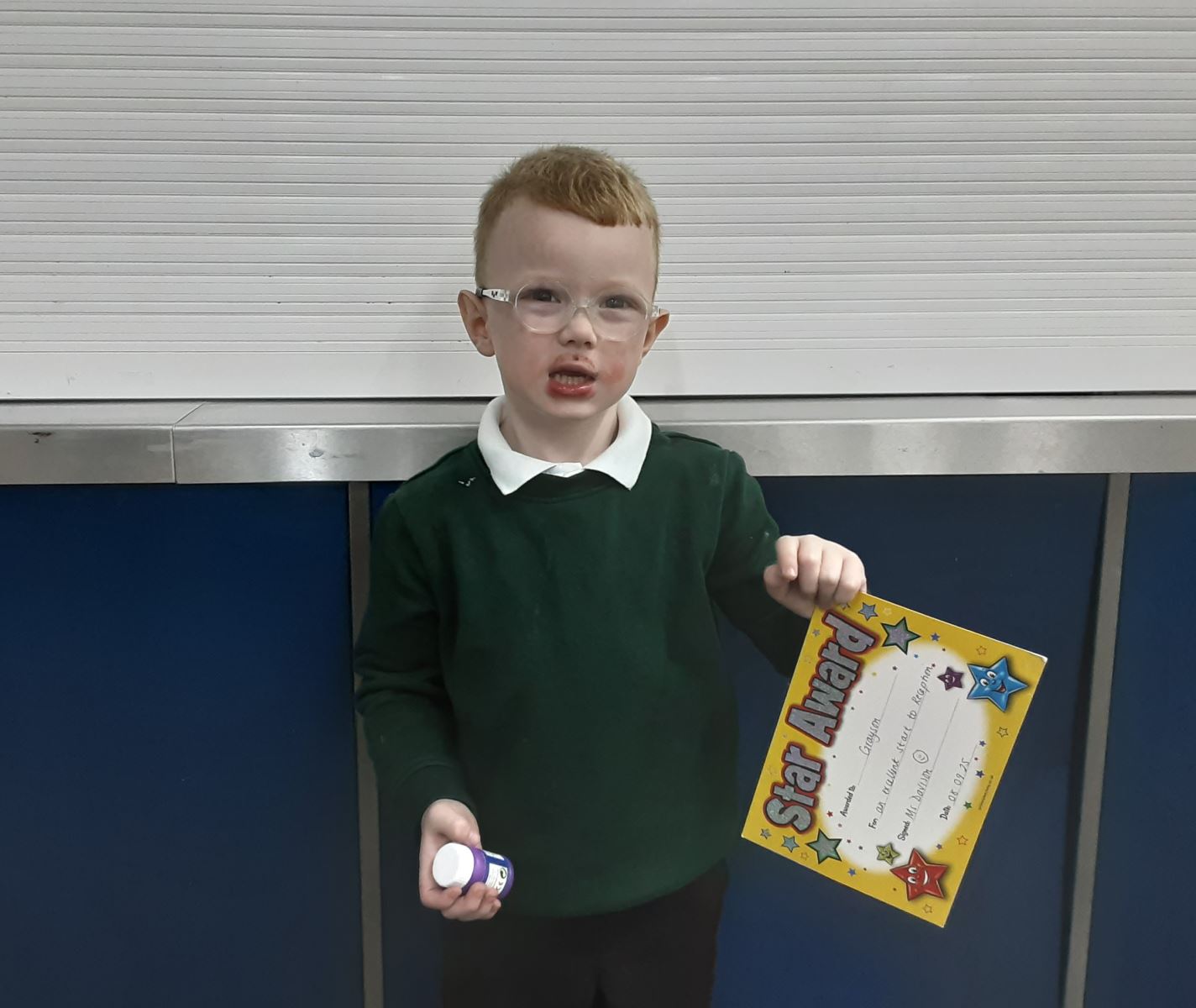 Jamie for trying his dinner at lunch time and settling into Reception so well.