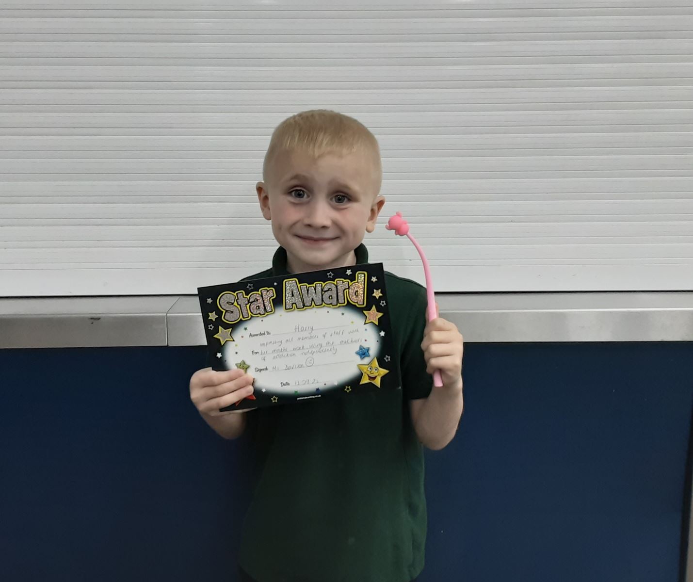 Harry for impressing all members of staff with his maths work, using the methods for addition independently.